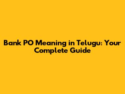 Bank PO Meaning In Telugu: Your Complete Guide