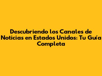 ¿Por Qué Elegir los Canales de Noticias de Estados Unidos?