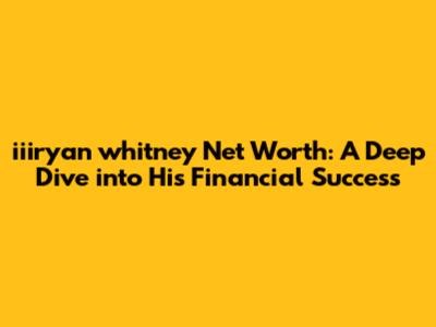 Hey everyone! Today, we're diving deep into the world of finance, specifically looking at the iiiryan whitney net worth. It's always fascinating to see how individuals build their fortunes, right? We're going to break down the key elements that have likely contributed to his financial success. Buckle up, because we're about to explore the career moves, investments, and potential ventures that have shaped his wealth. This isn't just about throwing numbers around; it's about understanding the strategies and decisions that have brought him to where he is today. We'll be looking at his public presence, professional background, and any known business dealings to piece together a comprehensive picture. Keep in mind that net worth estimations can vary, and this analysis is based on available public information and educated assumptions. So, let's get started and unravel the story behind the iiiryan whitney net worth!