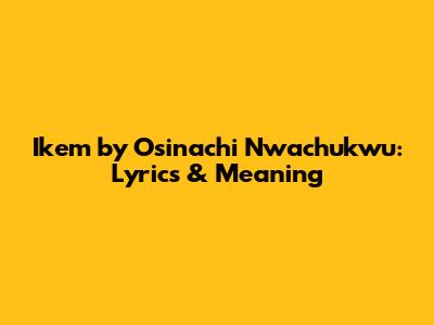 Ikem By Osinachi Nwachukwu: Lyrics & Meaning
