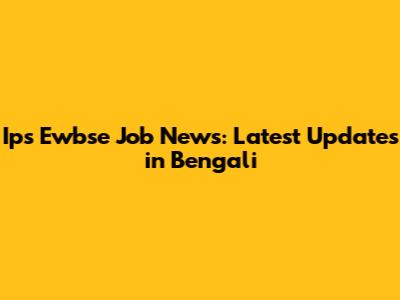 Ips Ewbse Job News: Latest Updates In Bengali