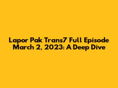 Hey guys, what's up! Today, we're diving deep into the full episode of Lapor Pak on Trans7 from March 2, 2023. If you're a fan of this hilarious Indonesian comedy show, you know how much fun these episodes can be. We'll be breaking down the key moments, the funniest bits, and why this particular episode might have been a standout. So, grab your snacks, get comfy, and let's get into it!
