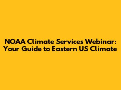 NOAA Climate Services Webinar: Your Guide To Eastern US Climate