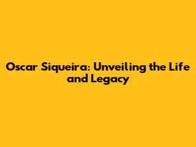 Oscar Siqueira: A Deep Dive Into His Life And Work