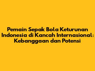 Pemain sepak bola keturunan Indonesia di panggung internasional adalah topik yang menarik dan membanggakan. Melihat pemain yang memiliki darah Indonesia bersaing di liga-liga top Eropa atau membela negara lain di level internasional memberikan kita rasa bangga tersendiri. Artikel ini akan membahas secara mendalam tentang pemain-pemain tersebut, mengapa mereka memilih jalur karier ini, serta dampak positifnya bagi sepak bola Indonesia.