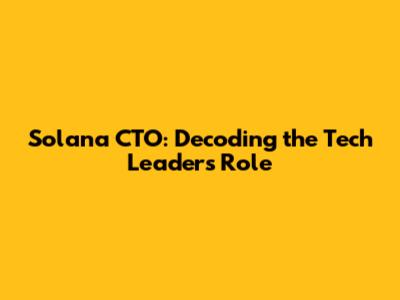 The Solana CTO plays a massive role in shaping the future of the platform. Their decisions impact everything from scalability and security to innovation and community trust.