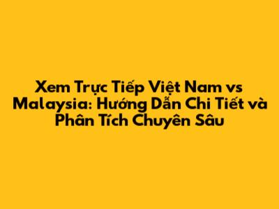 Xem Trực Tiếp Việt Nam Vs Malaysia: Hướng Dẫn & Phân Tích